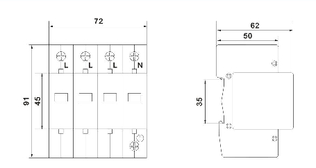 采用35mm的標準導軌安裝,連接銅質(zhì)導線為2.5~16mrf12。