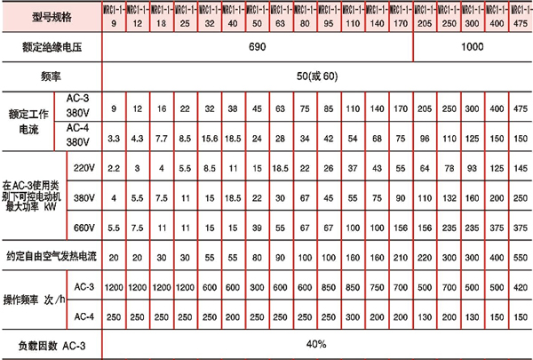 注:熱過(guò)載繼電器的整定電流應(yīng)≤接觸器的額定工作電流,吸引線圈電壓的其它規(guī)格可特殊定貨。