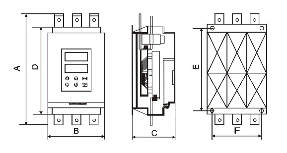 | 規(guī)格型號 | 功率(KW) | 6額定電流(A) | MRR1-Z型5.5-55KW/產(chǎn)品結(jié)構(gòu)尺寸 | 安裝尺寸(mm) | 安裝孔徑 | 重量(KG) | ||||