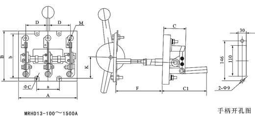 1.4側(cè)方正面操作機(jī)構(gòu)式刀開關(guān)主要用于正面操作、前面維修的開關(guān)柜中,操作機(jī)構(gòu)可以在柜的兩則安裝。