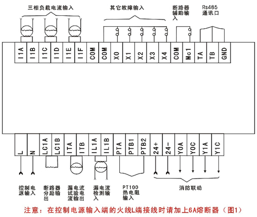 ILIA. ILIB | 漏電輸入端,接零序互感器的輸出端。 RS485通訊口,TA、TB為485信號(hào)線,GND為信號(hào)地 |