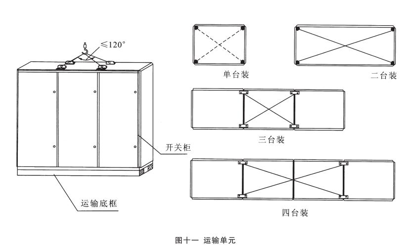 運(yùn)輸單元:產(chǎn)品分四種規(guī)格的運(yùn)輸單元:單臺(tái)裝、二臺(tái)裝、三臺(tái)裝和四臺(tái)裝。但總長度不得超過3m,見圖十一。