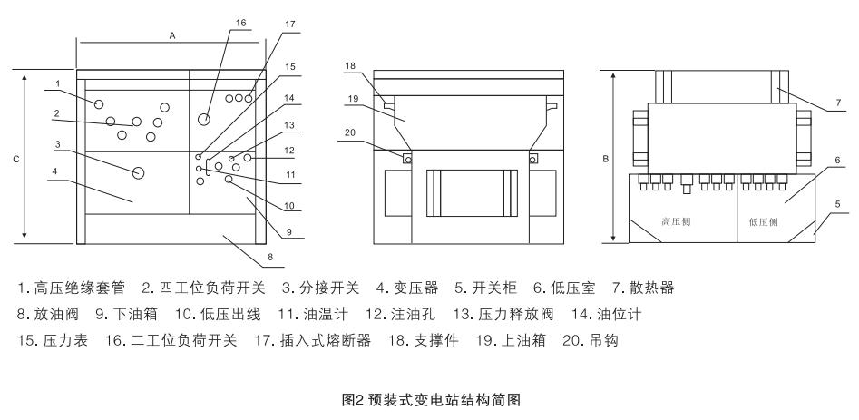 YB27系列預裝式變電站,適用于10kV環(huán)網(wǎng)供電、雙電源供電或終端供電系統(tǒng)中,作為變電、配電、計量、補償、控制和保護裝置。預裝式變電站內(nèi)除裝有變壓器外,高壓側(cè)還裝有四工位負荷開關、二工位負荷開關、后備保護熔斷器及插入式熔斷器;低壓側(cè)按用戶要求可裝控制電器、配電電器、補償裝置及計量表計等,以變壓器油作為絕緣和來弧介質(zhì)。